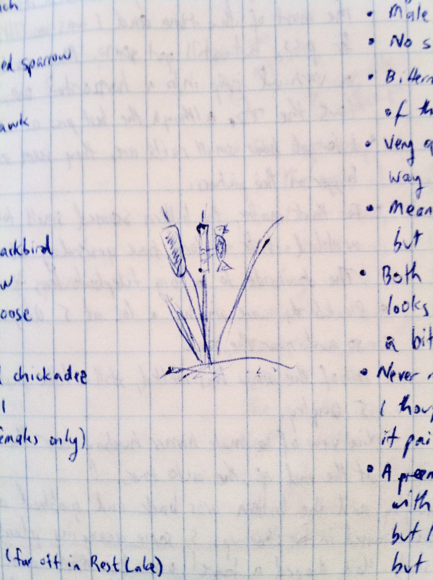 Look at this drawing and you can almost hear the red-winged blackbird singing in the cattails. It helps if you close your eyes while looking.
