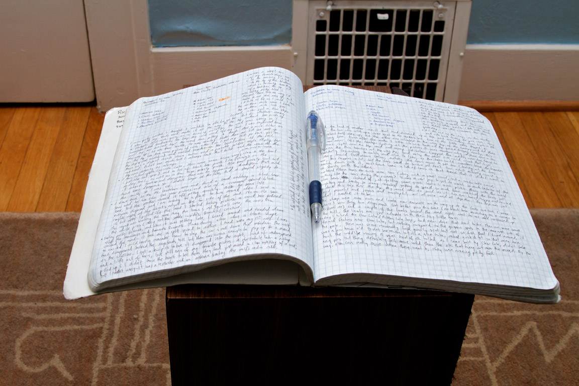 I used to keep notes about my hiking and photography outings on loose sheets of paper that were quickly lost. One day while in Office Depot I grabbed an inexpensive notebook to see if I’d prefer keeping my notes in more permanent form. I think it may have cost all of two dollars. It’s a simple notebook from Roaring Spring Compositions, designed for children I’d guess given that the cover asks for your school and grade. It was quad ruled which I liked as I tend to wander without the guiding hand of the grid. It measures 9 3/4″ by 7 1/2″ and was made in the USA, presumably in Roaring Spring, PA.